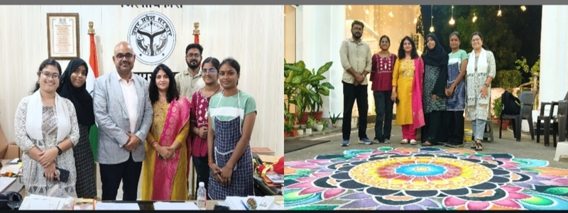 कानपुर विश्वविद्यालय की छात्राओं ने जिलाधिकारी शिविर कार्यालय में बनाई मनमोहक रंगोली